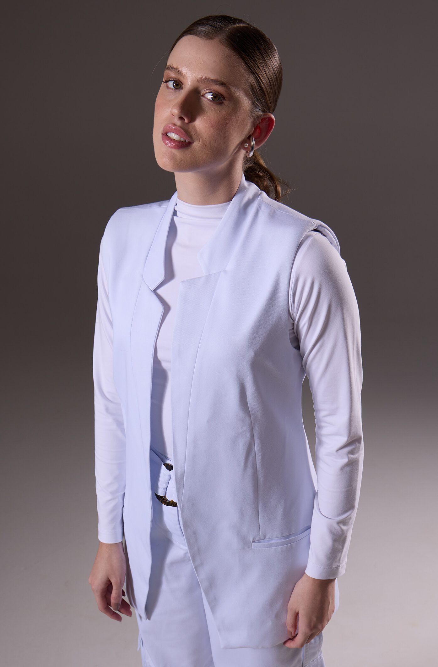 A partir de esta inmersión, desarrollamos piezas que equilibran estética, funcionalidad e identidad. Trabajamos cuidadosamente la elección de colores, tejidos y cortes para crear un look moderno y elegante, sin perder la seriedad necesaria en el entorno médico.