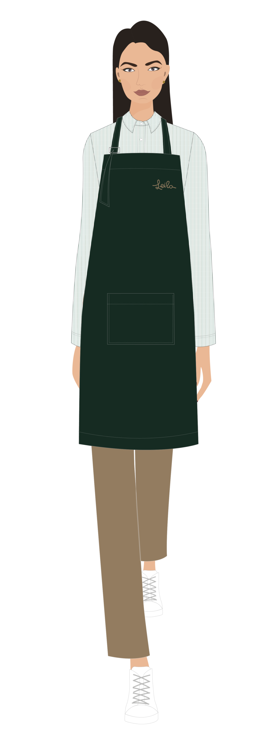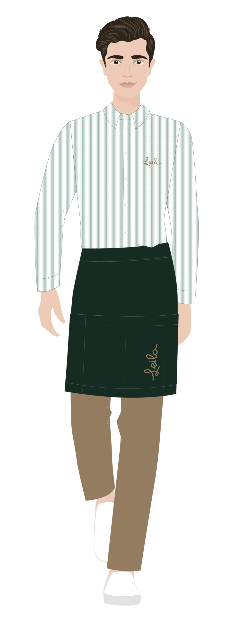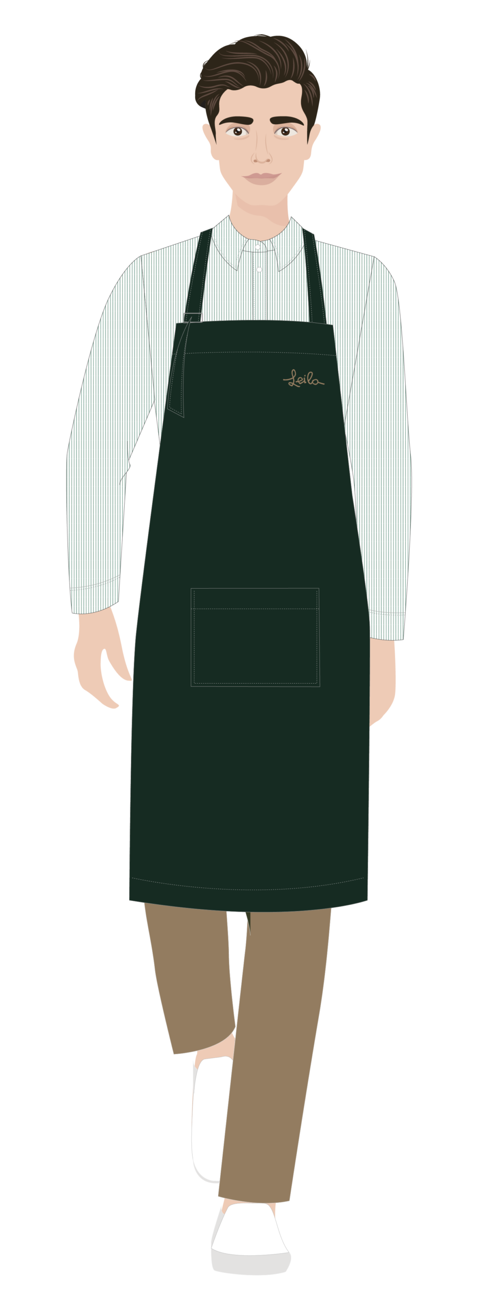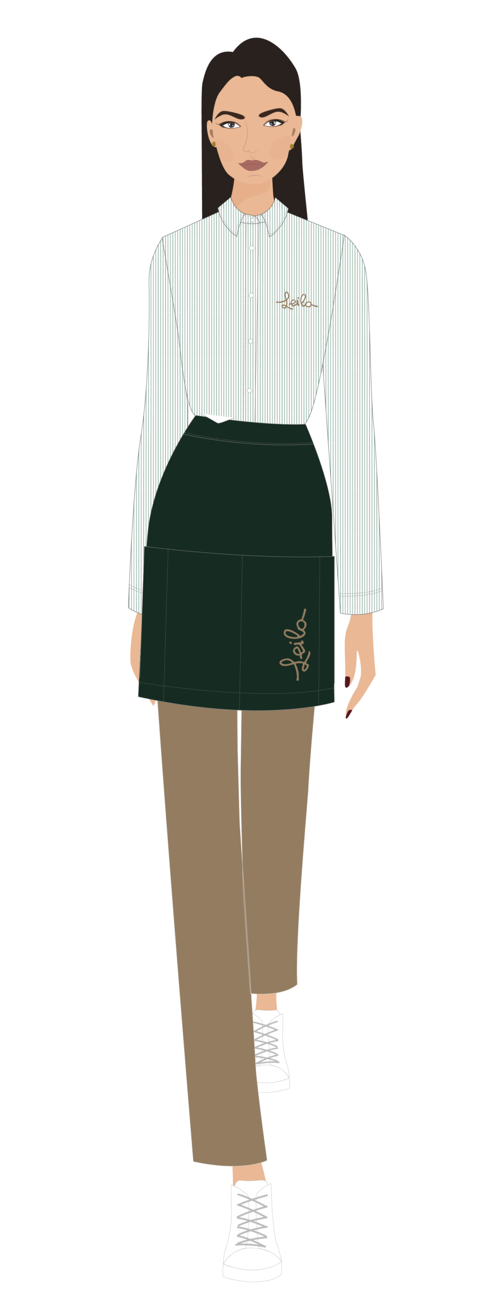 El resultado es un uniforme que comunica elegancia, organización y atemporalidad, traduciendo visualmente la experiencia de Leila: un restaurante que valora la tradición de la hospitalidad con un enfoque contemporáneo y refinado.